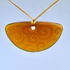Part of the attraction of the glasswork to Buzz is the reclamation of material that would otherwise go to landfill. In Buzz’s workshop, discarded glass is transformed into satiny, smooth, individual pieces of jewellery. The ocean, the big sky, and the landscapes Buzz lives in are apparent in the fluidity and colours of his work. Recently Buzz been hand-drawing fantastical landscapes, influenced by the spectacular vistas of Central Otago, and sandblasting them into glass.